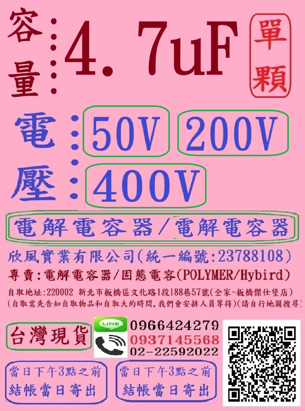 容量:4.7uF,電壓:50V+200V+400V,電解電容器(E-CAP/CAPACITORS)單顆下標網址台灣現貨/專賣電解電容器(CAPACITORS)/固態電容(POLYMER/Hybird