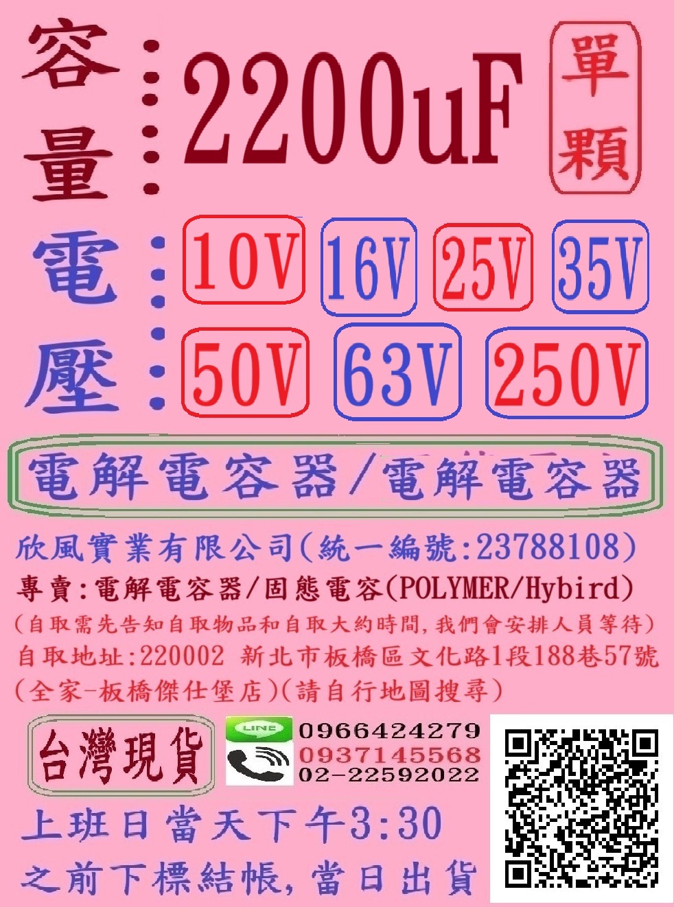 蝦皮拍賣下標網址: https://shopee.tw/%E9%9B%BB%E5%AE%B9%E5%99%A8-%E5%9B%BA%E6%85%8B%E9%9B%BB%E5%AE%B9-%E5%AE%B9%E9%87%8F-2200uF-%E9%9B%BB%E5%A3%93-10V-16V-25V-35V-63V-250V-%E5%96%AE%E9%A1%86%E4%B8%8B%E6%A8%99%E7%B6%B2%E5%9D%80-i.8956279.53350749482?extraParams=%7B%22display_model_id%22%3A430067485746%2C%22model_selection_logic%22%3A3%7D&sp_atk=8e503470-a3fc-48db-83cb-692eef638c5d&xptdk=8e503470-a3fc-48db-83cb-692eef638c5d